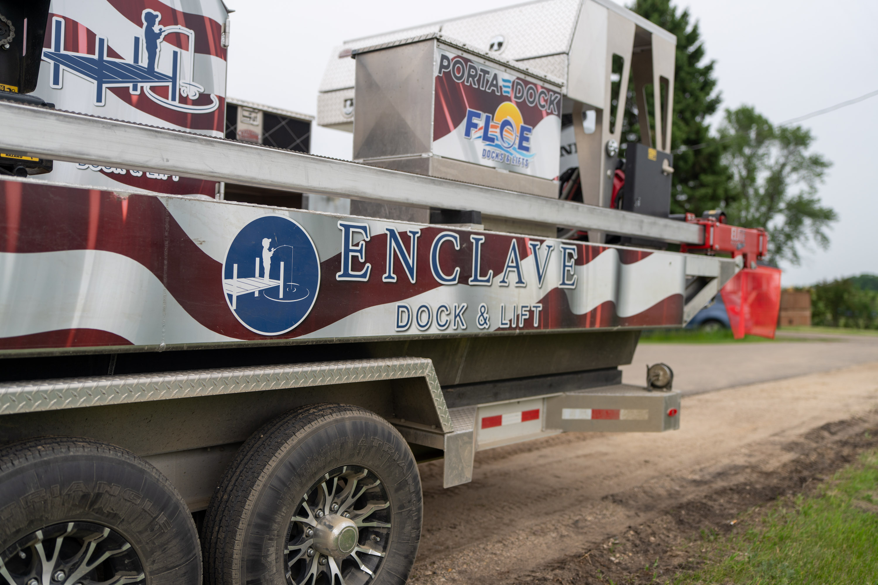 How do you safely transport dock components once they're out of the water? Enclave maintains trailers specifically designed for dock transportation, with appropriate tie-down systems, weight distribution capabilities, and Department of Transportation permits for oversized loads when necessary. These transportation systems ensure dock sections remain secure during transit, prevent damage from road vibrations, and comply with legal requirements for safe highway travel across Otter Tail County.